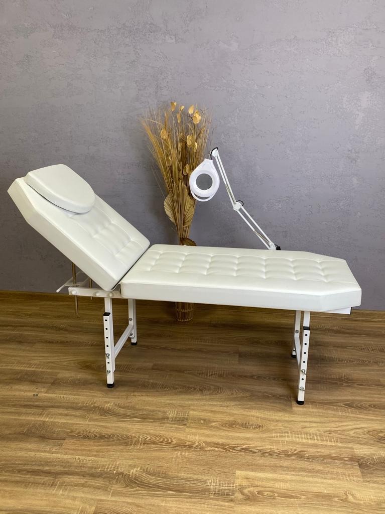 Кушетка с регулируемой высотой для эпиляции ,косметологии. • Сверхпрочная кушетка, сделанная из толстостенного профиля выдержит нагрузку более 200 кг • Специальные отверстия по краям ложа позволяют разместить лампу-лупу и делать процедуру еще более качественно • Кроме того, можно отрегулировать высоту кушетки индивидуально для каждого мастера. •  Мы все продумали: есть место для коленей мастера как под спинкой, так и в ножной части • Кушетку можно разобрать, что позволит сэкономить на транспортных расходах • Мы сделали стежку на ложе кушетки, что добавит удобства для клиента и будет достойным украшением вашего салона. Цвет покрытия можно выбрать.